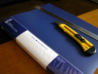 1. В виде базы примем на вооружение обычную пластмассовую папку с зажимом-”кольцом”. Ее надо разметить и “чуть-чуть укоротить” (ножичком). Формат моего органайзера 175×115 мм.