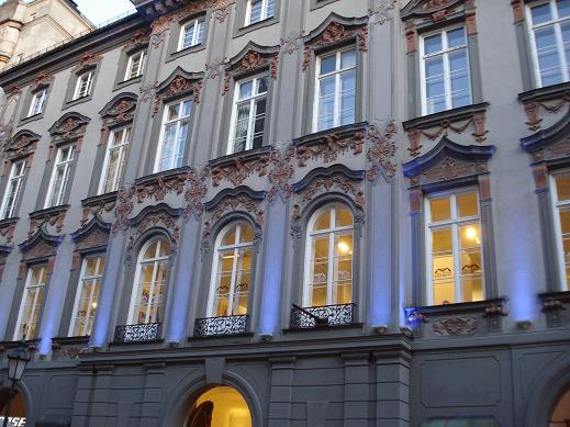 С пришествием сумерок включилась подсветка фасадов. На данном здании она плавненько чередовалась всеми расцветками радуги.